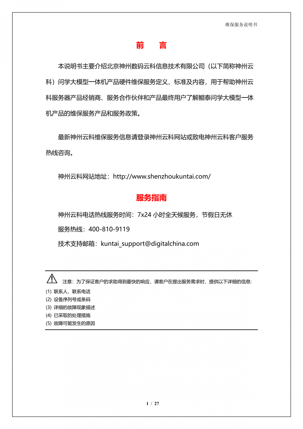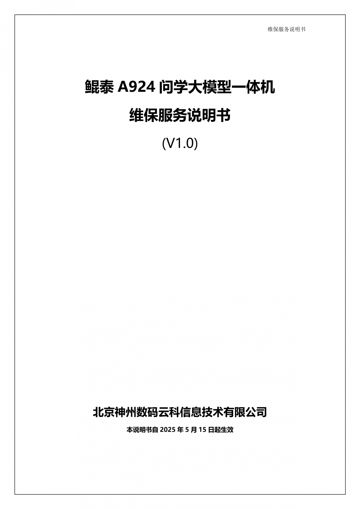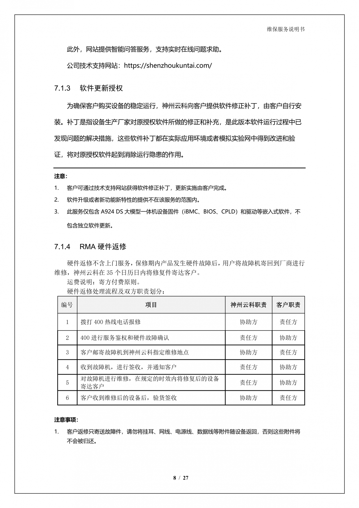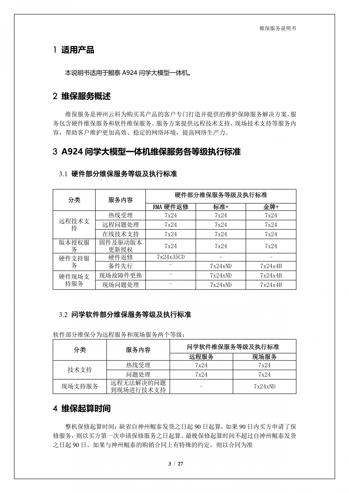 九州酷游 ku游A924 DS大模型一体机硬件维保服务说明书_V1.1