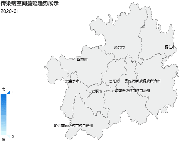 上图:贵州省新型冠状病毒感染的肺炎发病数空间分布图