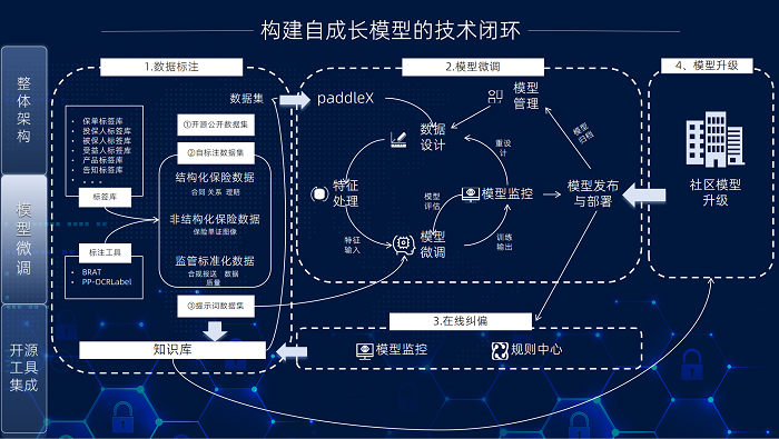 • 数据层:规范数据约束与格式,处理多结构语料(如保险条款切分、多模态信息提取),强化基于领域知识的数据清洗与标注,加强半结构化数据集建设;