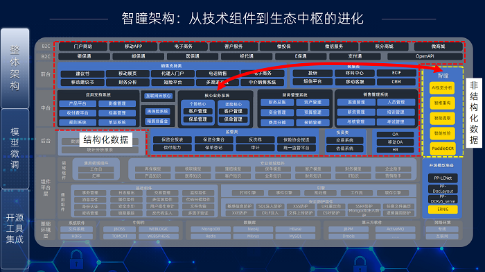 保险领域的AI产品包罗万象,如何选择正确场景将机会转化为产品是需要深度思考的核心问题。在IT部门有助于 “提升国产开源软件占比” 与业务部门期望 “加速智能化转型、降低人工录入错误率” 的双重需求背景下,两个部门目标的融合,为智瞳平台的诞生与开展提供了坚实基础。